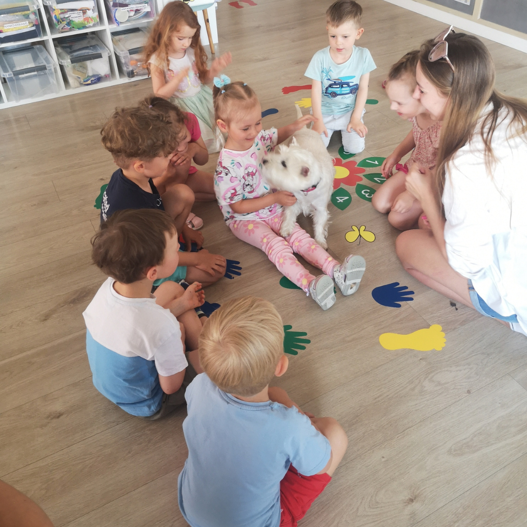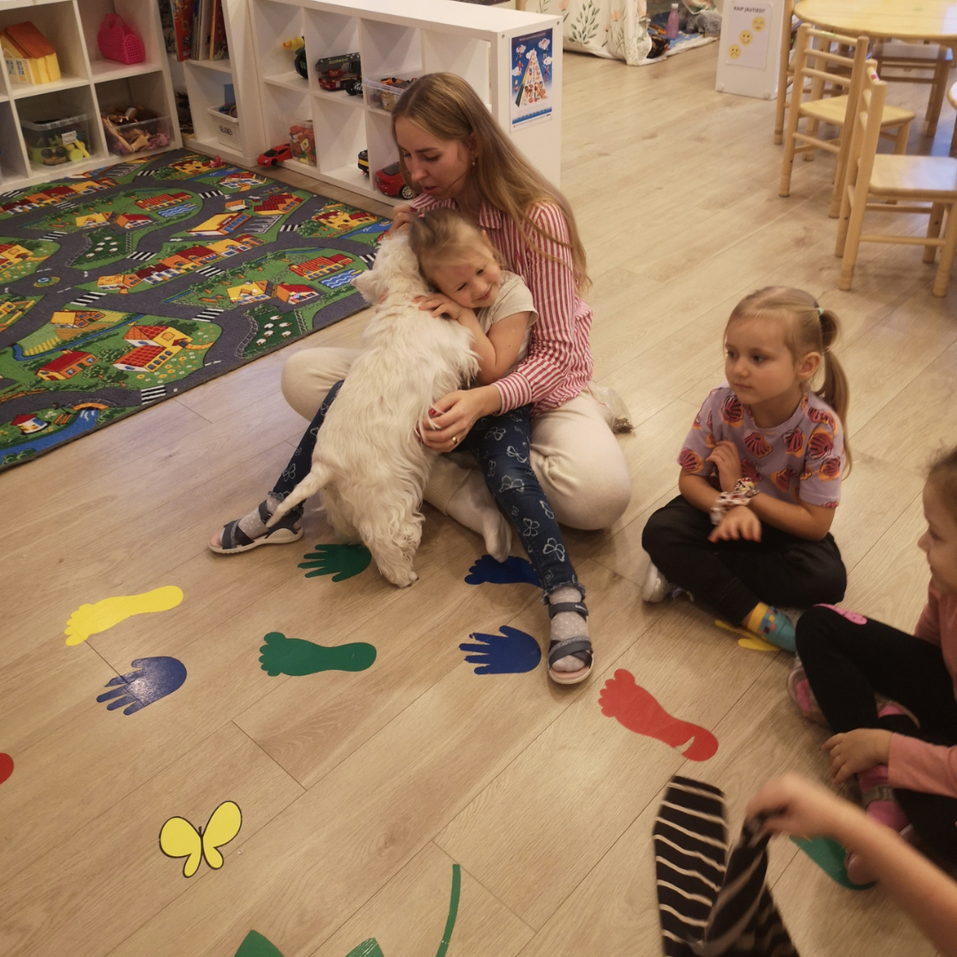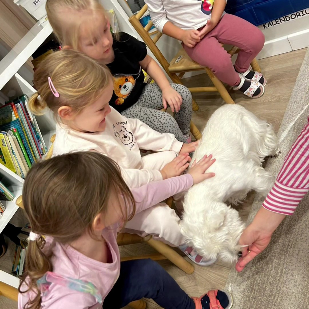 Vaikai įsitraukia į istorijas, užduotis su šunimi, aktyviai klausosi ir mokosi naujų žodžių bei sąvokų. Tai ypač naudinga kalbos raidos skatinimui.