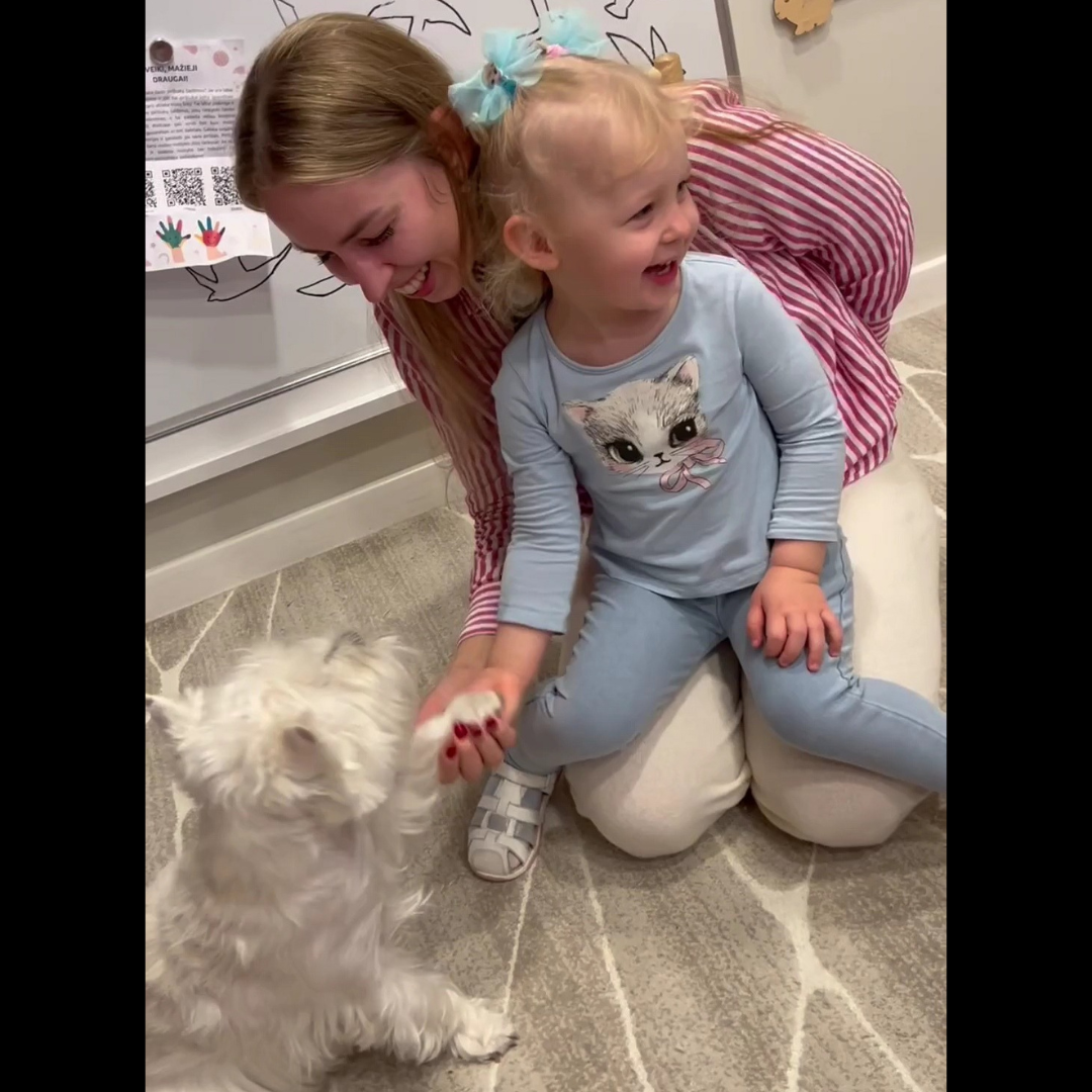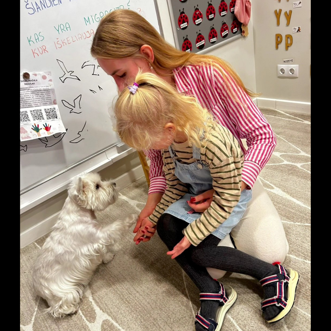 Terapiniai šunys skleidžia ramybę, mažina stresą ir suteikia daug džiaugsmo! Tai ypač naudinga jautresniems vaikams, padeda atsipalaiduoti ir kurti teigiamas emocijas.