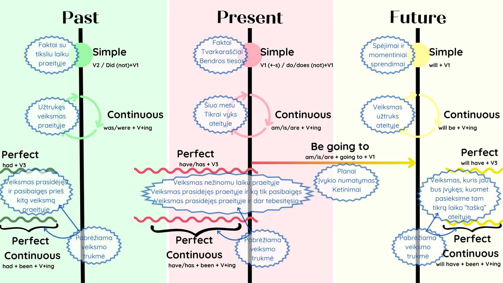 Visi anglų kalbos laikai vienoje lentelėje!